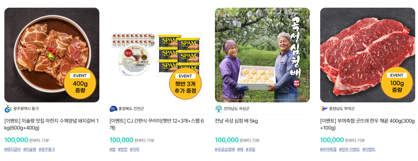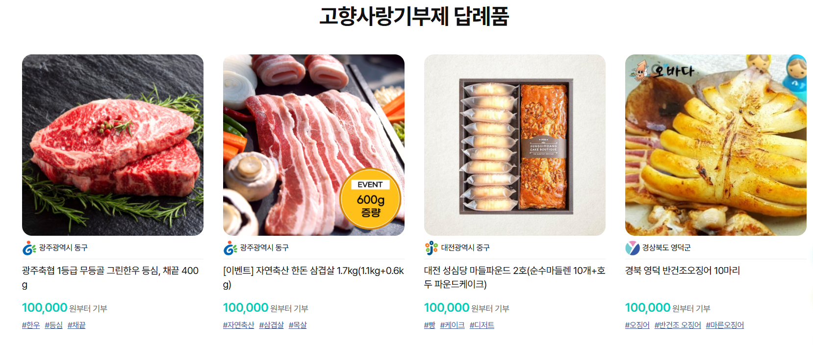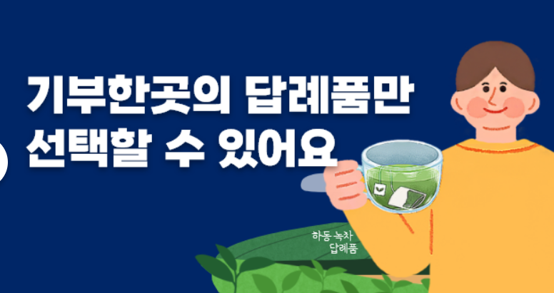 - 기부 금액 확인: 선택 가능한 답례품은 기부 금액에 따라 다릅니다.