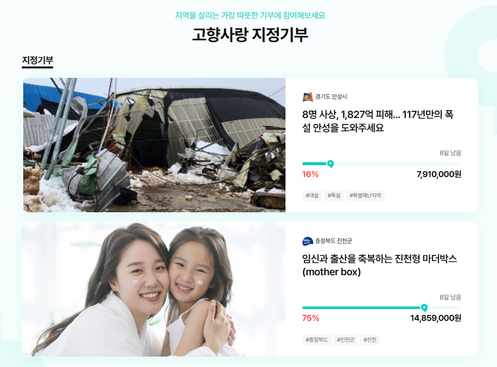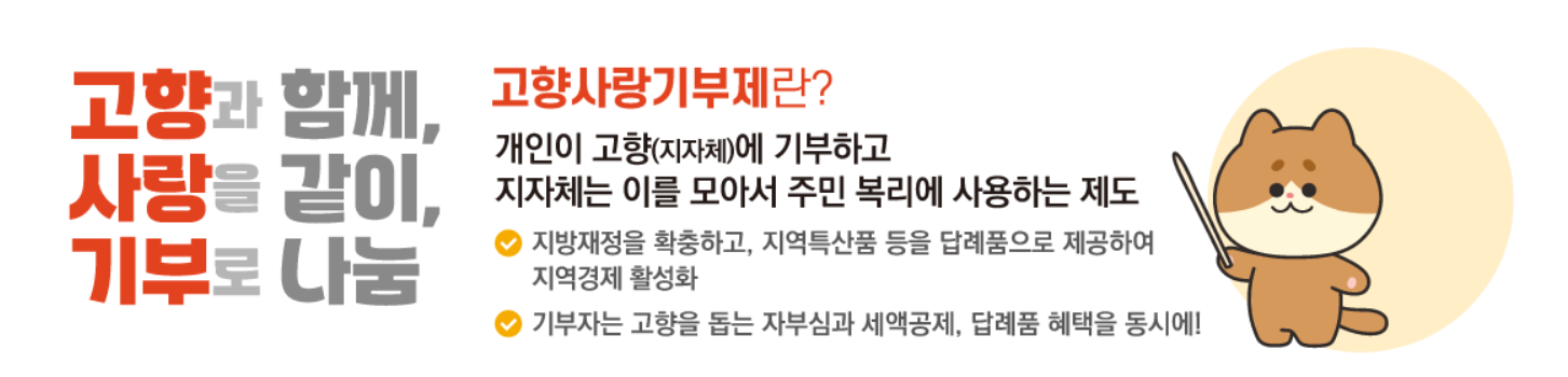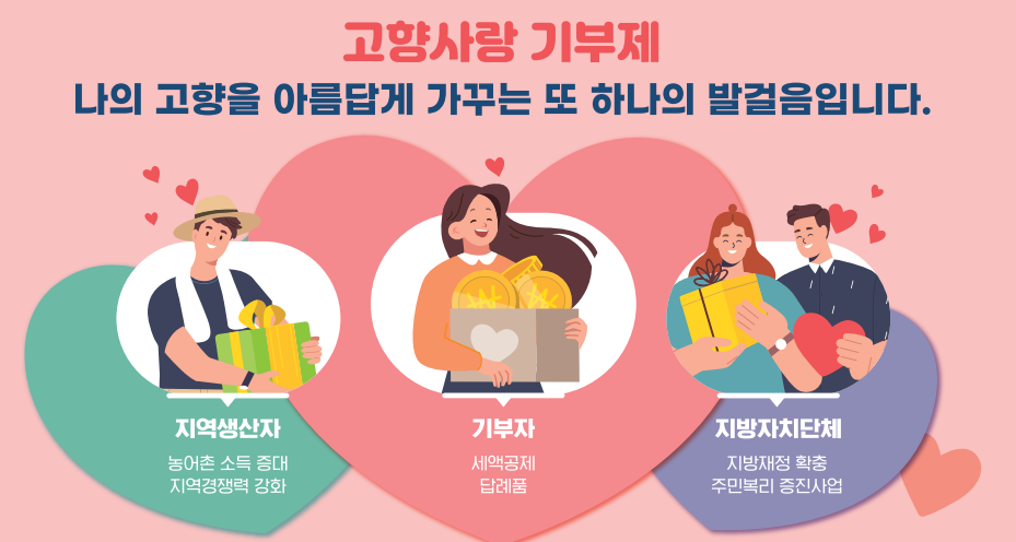 고향사랑기부제는 기부자와 지역 사회 모두에게 이익이 되는 제도로, 누구나 쉽게 참여할 수 있습니다. 지금 바로 기부를 통해 고향과 대한민국의 미래를 함께 만들어 가세요.