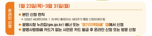 유의사항: 광명사랑화폐 카드가 없는 경우, 카드를 먼저 발급받아야 온라인 신청이 가능합니다.