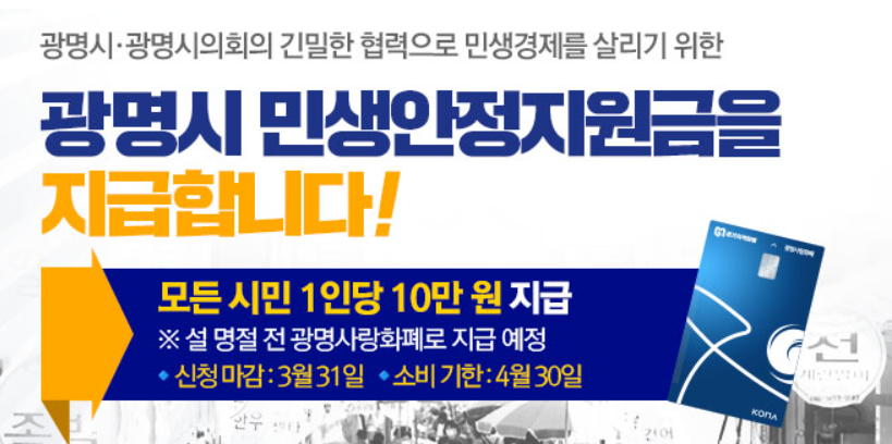 이번 지원금은 광명사랑화폐 카드로 지급되며, 광명시에 거주하는 시민이라면 누구나 신청할 수 있습니다.