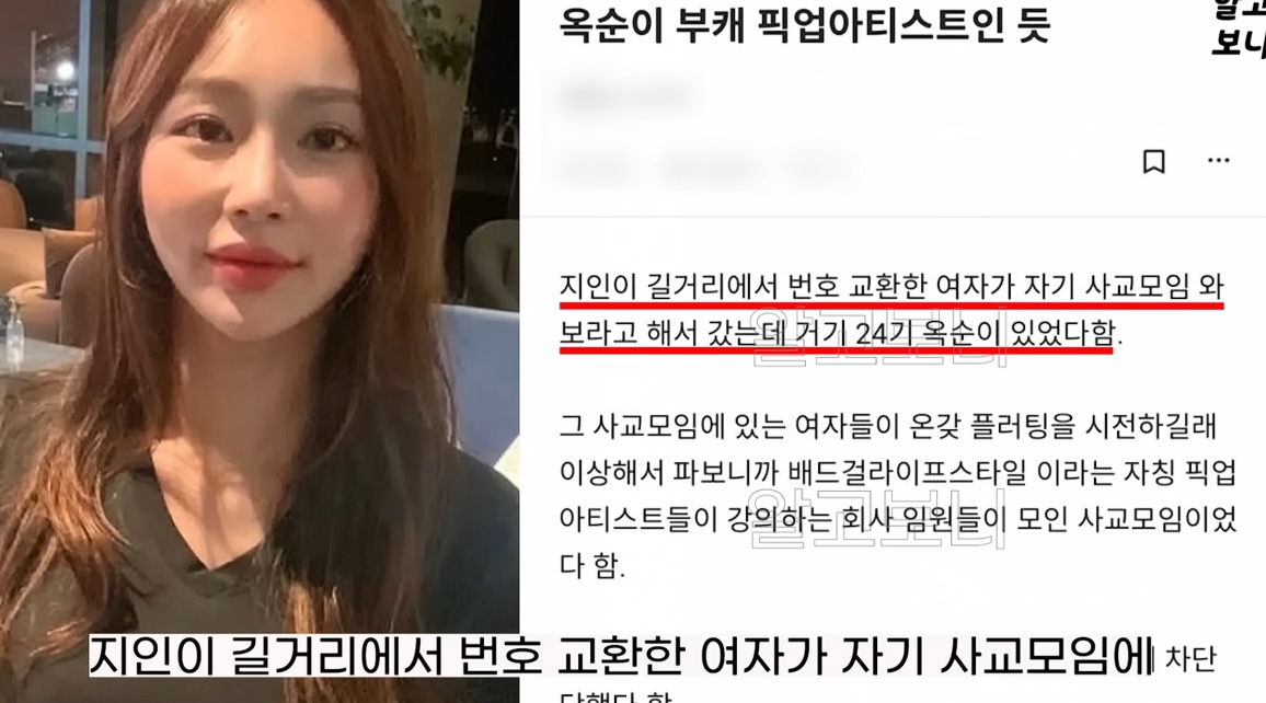 방송 이후 옥순이 픽업 아티스트 활동을 했다는 루머가 온라인에서 퍼지고 있습니다.