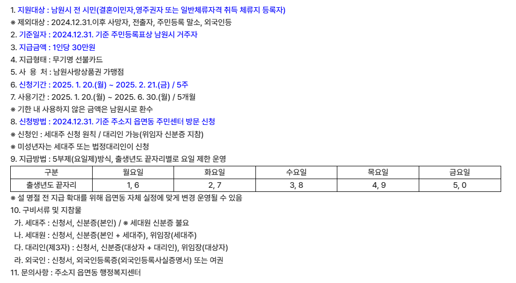 이번 지원금은 모든 남원시민이 수혜받을 수 있도록 설계되었으며, 신청 방법부터 사용처까지 알아야 할 모든 정보를 정리했습니다. 남원시민이라면 꼭 확인하시고 혜택을 놓치지 마세요.