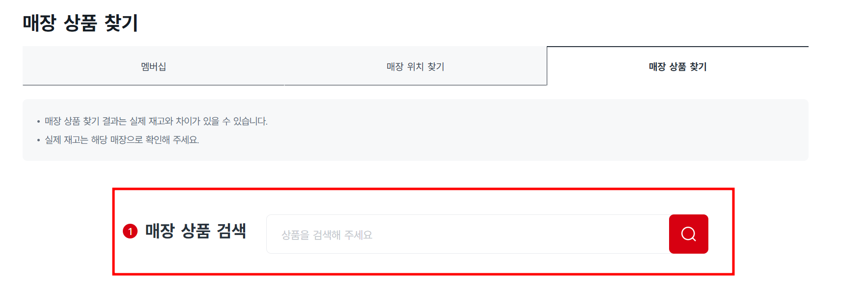 - PC 및 모바일에서 매장 상품 찾기 메뉴를 클릭하세요.