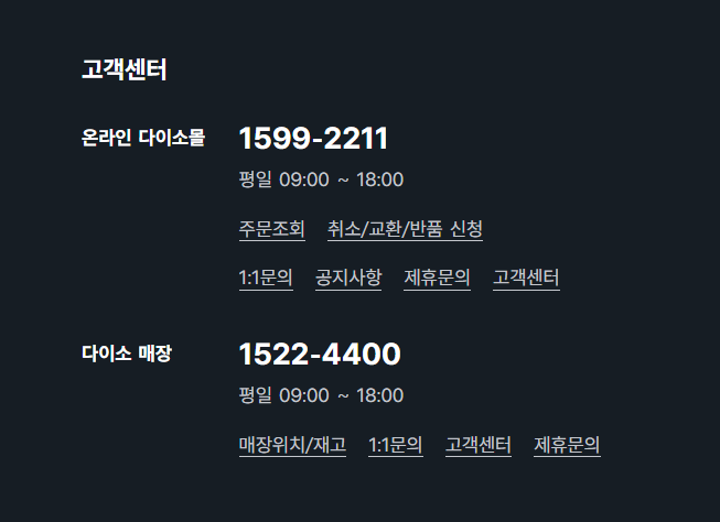 - 다이소 고객센터(1522-4400)로 연락하면 실시간으로 매장 정보를 얻을 수 있습니다.