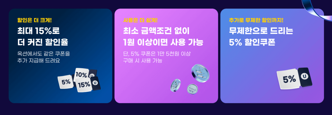 - 매월 5% 할인쿠폰 3장 (최대 2만원 할인)