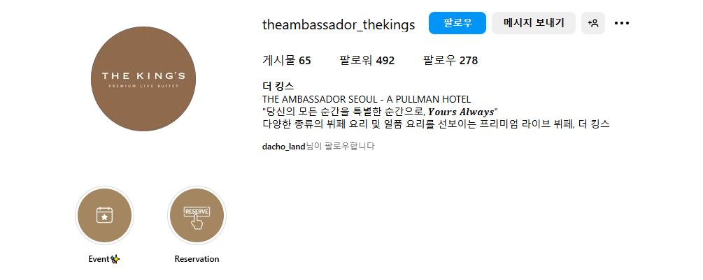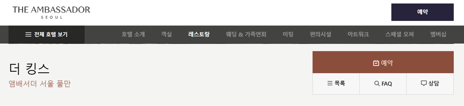 주소: 서울 중구 동호로 287, 앰배서더 서울 풀만 호텔 1층