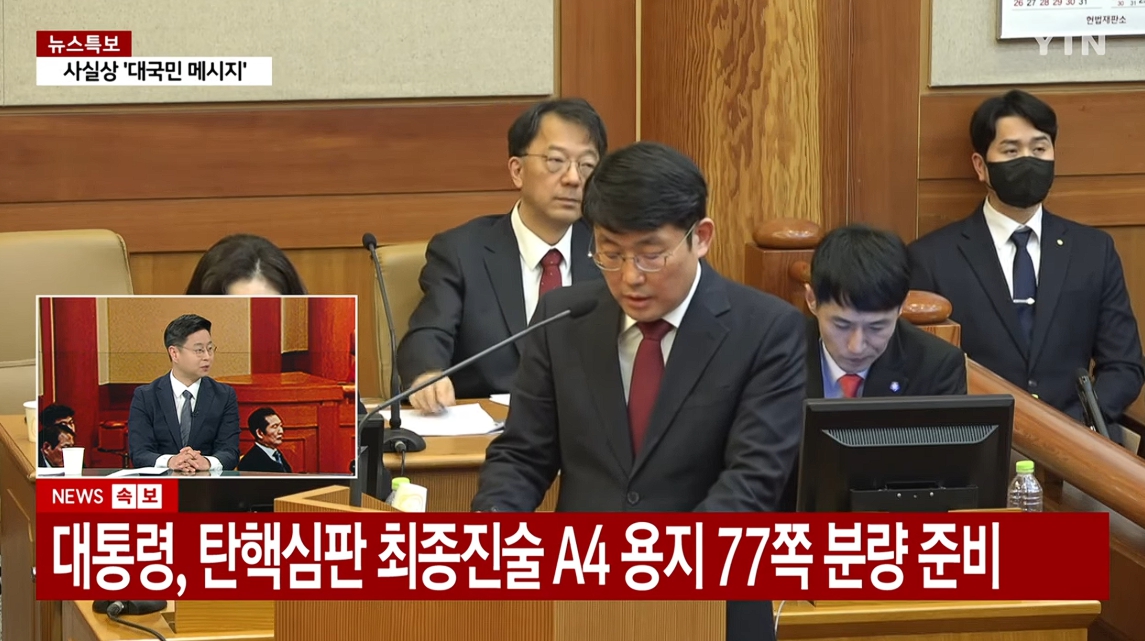 2025년 2월 25일, 대한민국 헌법재판소에서 윤석열 대통령 탄핵 심판의 최종 변론이 진행되었다.