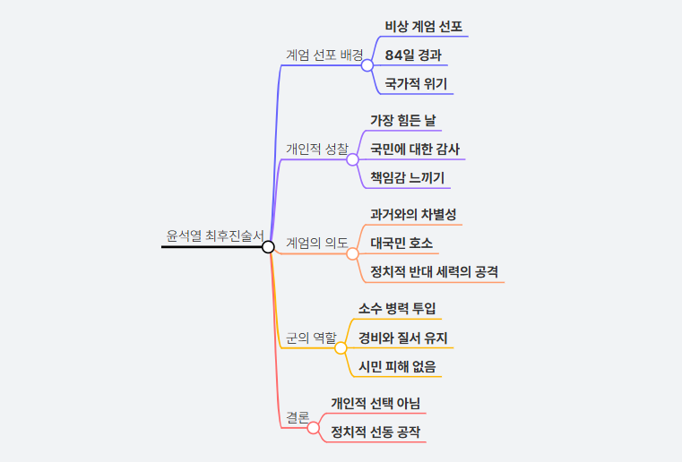 그는 이러한 점들이 비상 계엄이 독재적 조치가 아니라 국가 안정을 위한 불가피한 선택이었음을 증명한다고 주장했다.