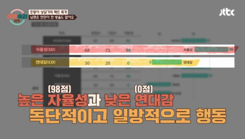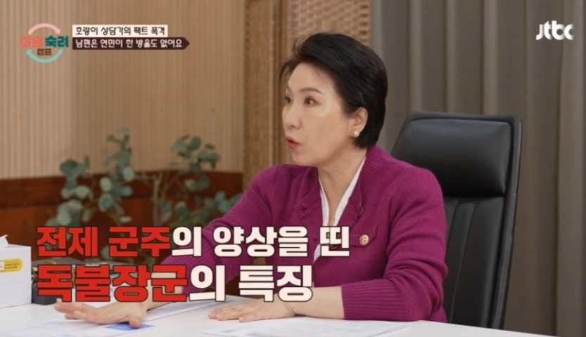 심리 검사 결과, 남편은 공감 능력이 부족하고 독불장군형 성향을 보였습니다. 상담가는 "그의 전제 군주적 성향은 주변 사람들에게 큰 스트레스를 준다"고 분석했습니다.