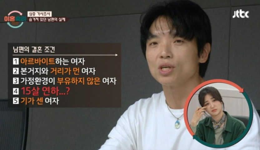 결혼 전, 전국을 돌며 약 30명의 여성을 만나면서 자신의 기준에 맞는 배우자를 찾으려 했습니다. 이 과정은 남편의 자기중심적이고 독단적인 성격을 드러냅니다.