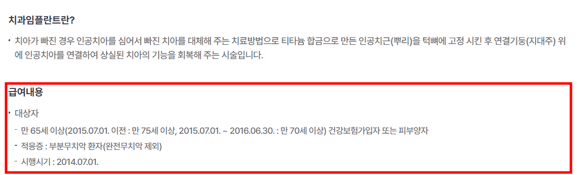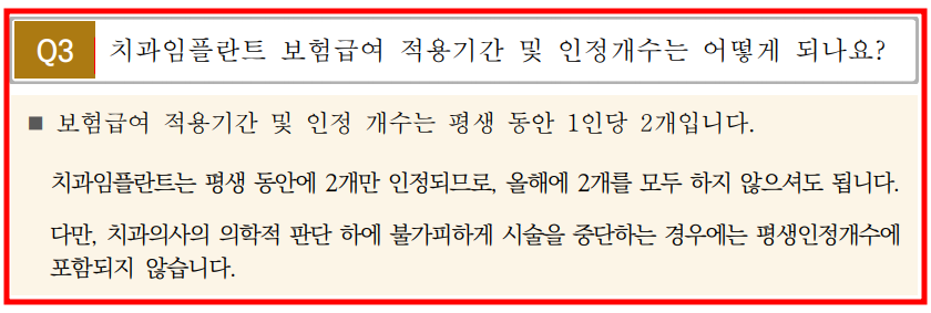 - 평생 최대 2개의 임플란트까지 건강보험 혜택 적용.