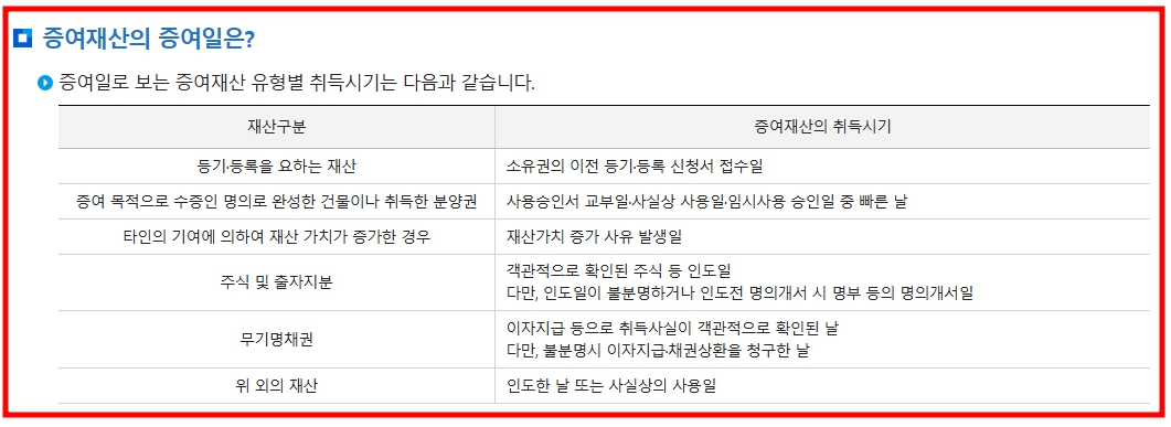- 증여재산 명세서
