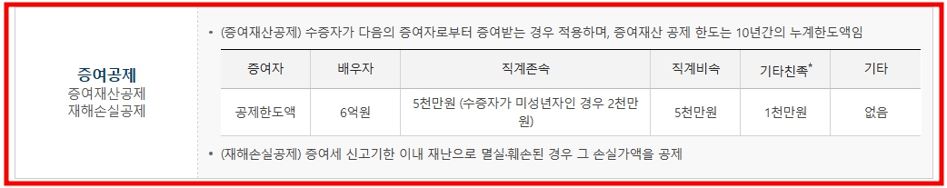 증여세 면제 한도액