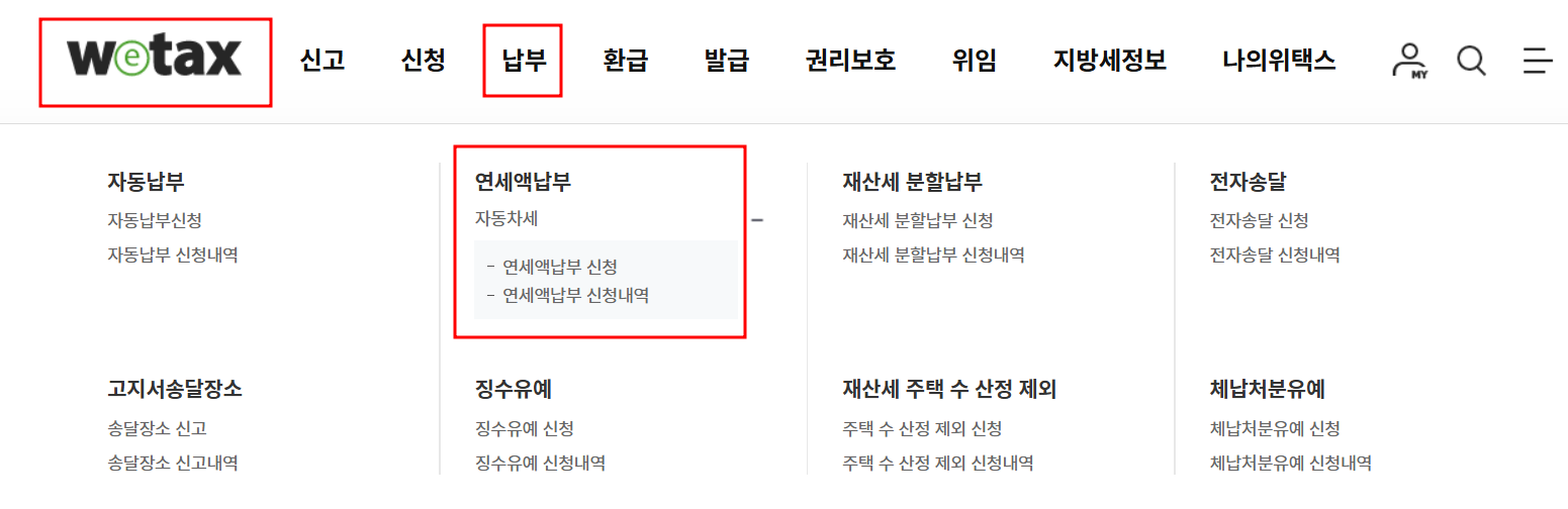 - PC: 위택스 웹사이트 로그인 → ‘납부하기’ 메뉴에서 세액 확인.