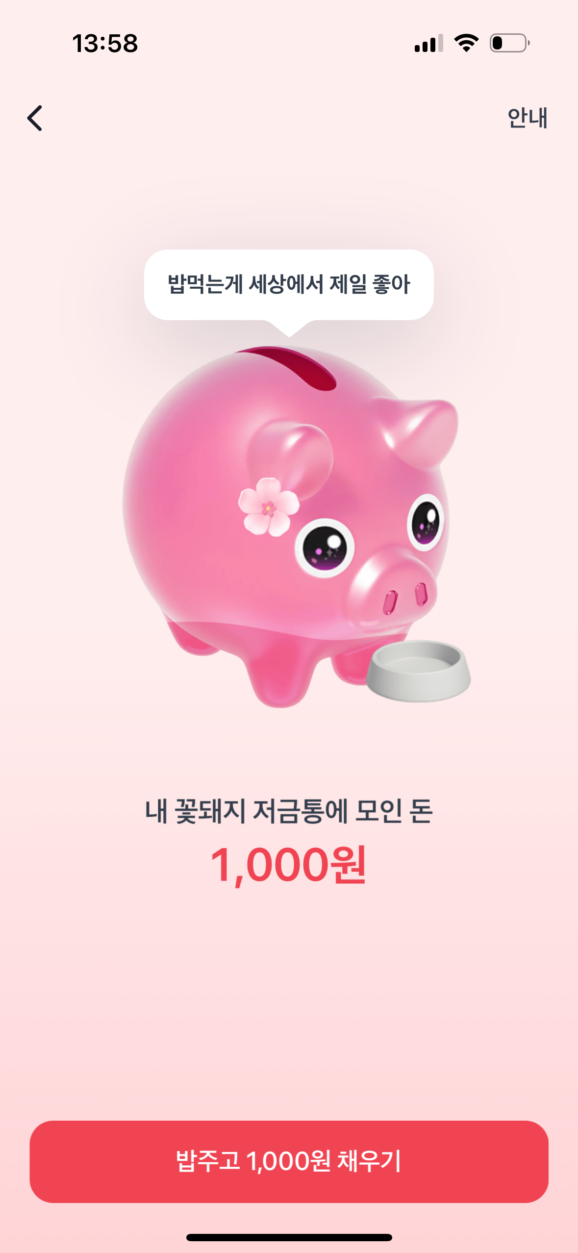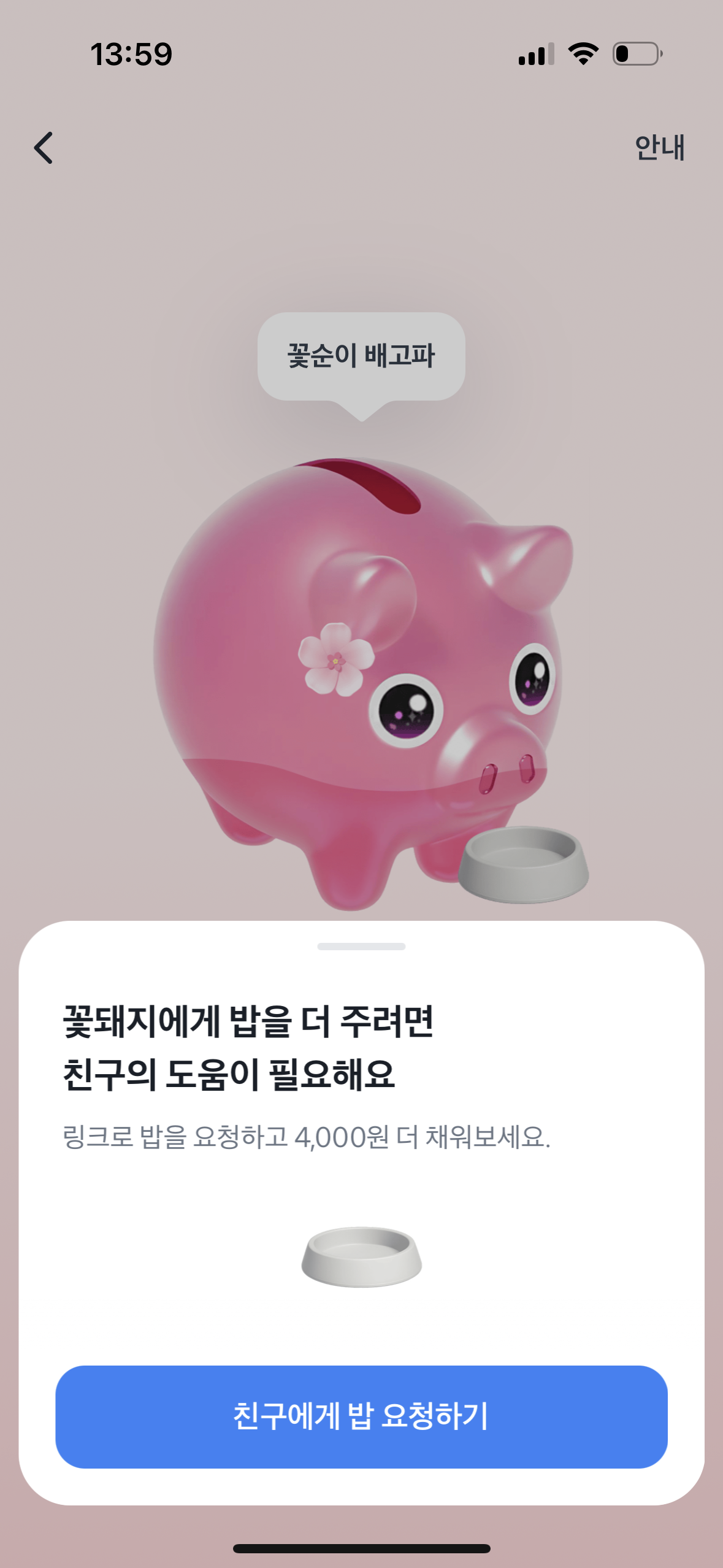 '꽃돼지 밥주기'는 이벤트의 핵심 기능 중 하나로, 친구가 서로의 저금통에 일정 금액을 추가해주는 방식입니다. 단순한 저축을 넘어 참여자 간의 협력을 유도하며, 보다 빠르게 목표를 달성할 수 있도록 돕습니다.
