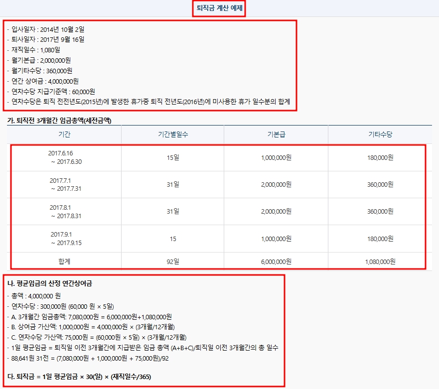 2. 퇴직금 계산 공식