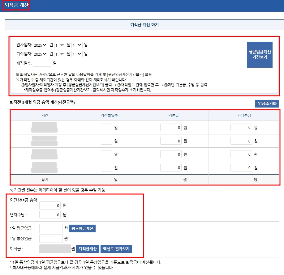 4. 퇴직금 계산기 사용 방법