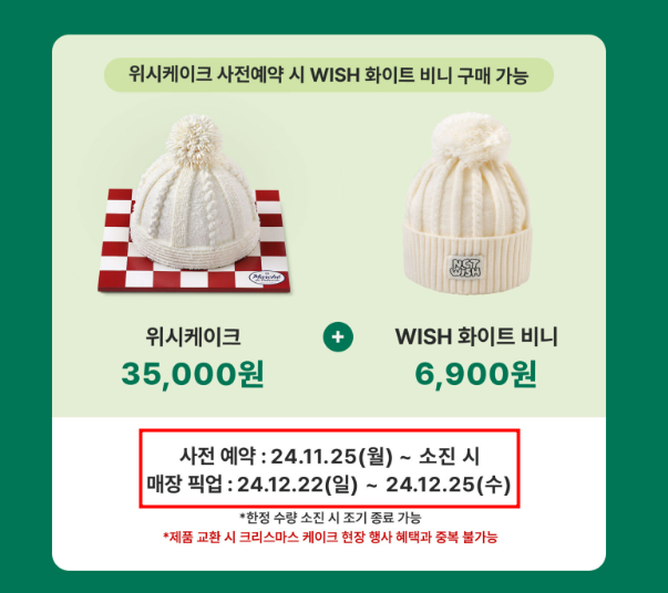 또한 위시케이크 사전예약 시 WISH 화이트 비니 구매 가능하니 참고하세요.